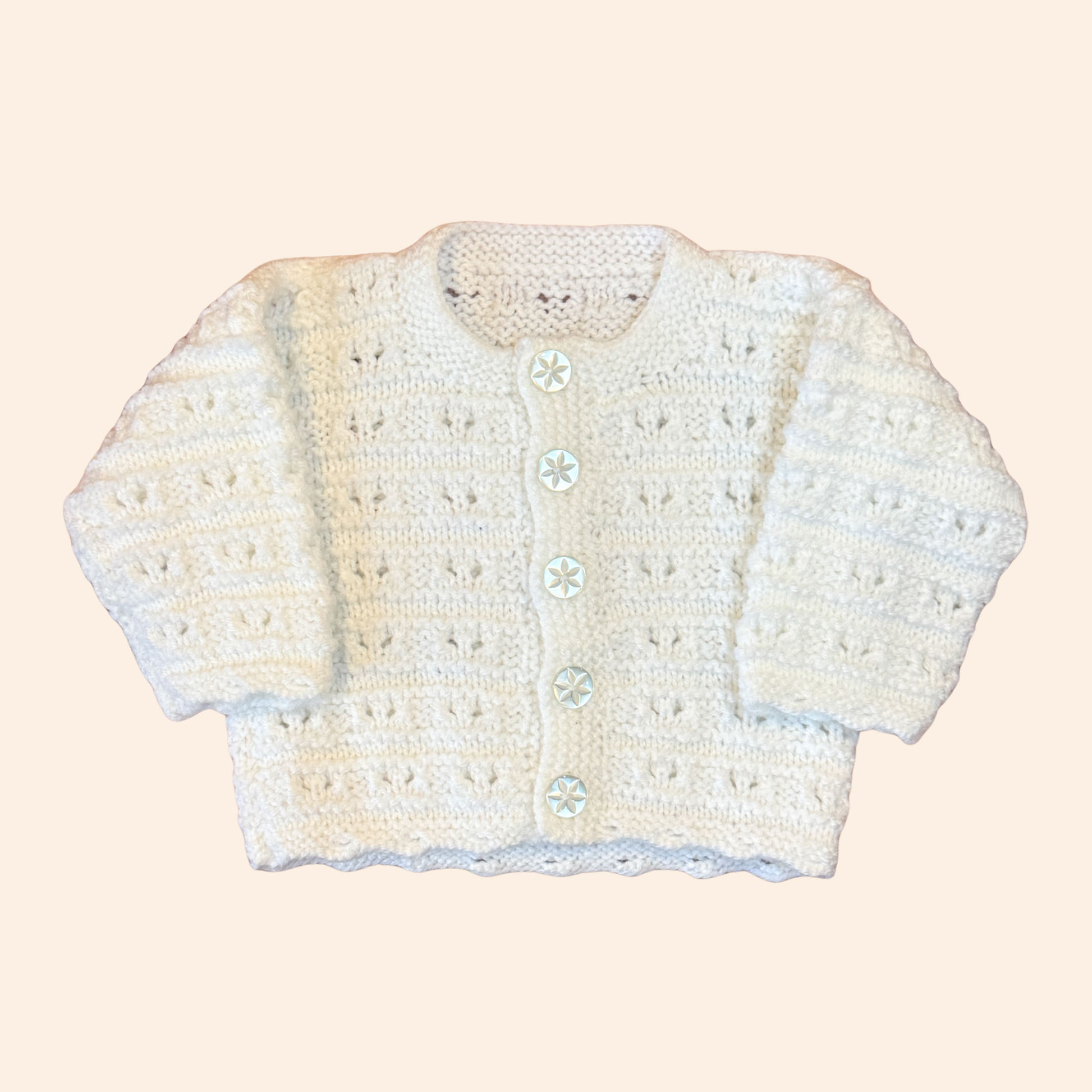 White 3-6 month hand knit cardigan